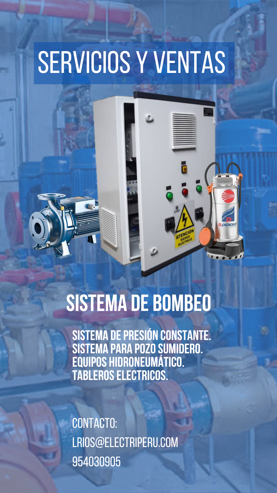 - Mantenimiento, venta e instalación de equipos de bombeo tipo presión constante.